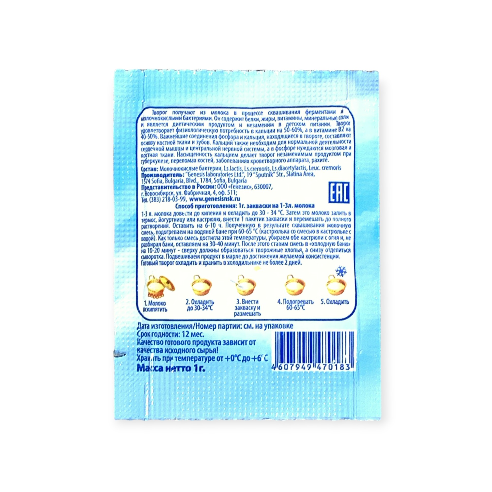 Закваска Творожок Genesis, 1 пакет от 100 руб. с доставкой. Пункт выдачи в Коряжме. Интернет магазин по сыроделию. Всё всегда в наличии.